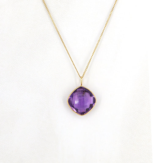 Checker Cut Amethyst Briolette Pendant 14K Gold