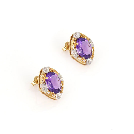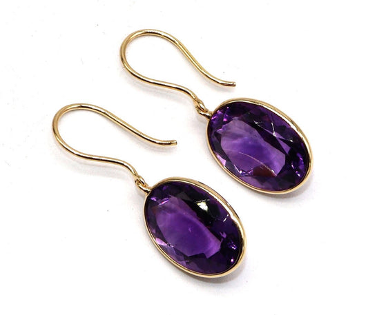 18Kyellow Handmade Citrine Amethyst Hanging Earring Gold