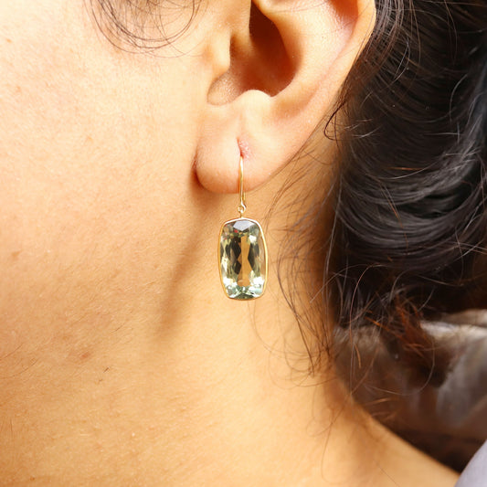Yellow Handmade Amethyst Hanging Earring 18K Gold