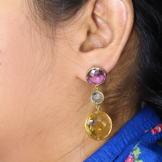 Amethyst Blue Topaz Beer Quartz Earring 18K Gold