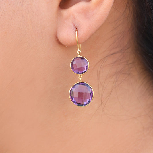 Faceted Amethyst Gemstone Earring Gold