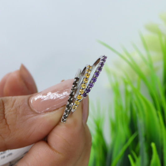 Minimalist Amethyst Smokey Quartz Citrine Gemstone Ring Silver