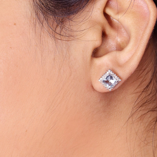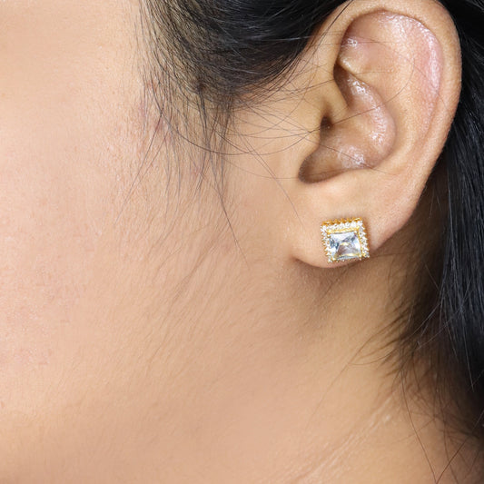Cluster Studded Princess Cut Aquamarine White Aquamarine White Studs Earring 14K Gold