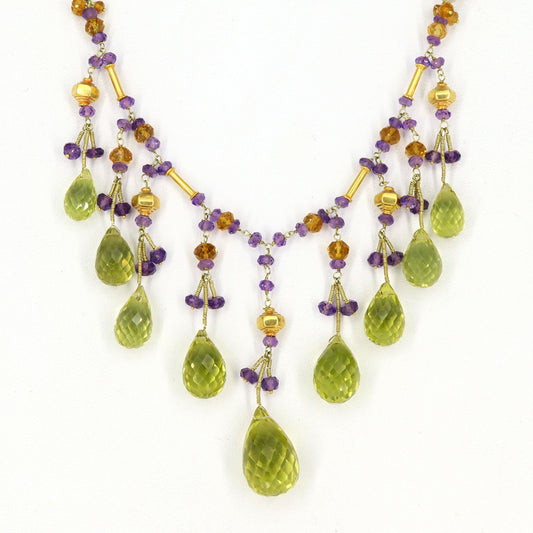 Amethyst Aquamarine Citrine Lemon Topaz Necklace 18K Gold