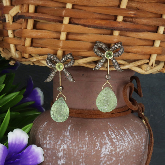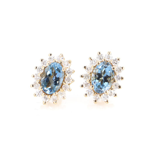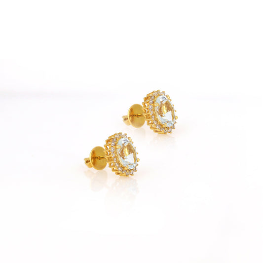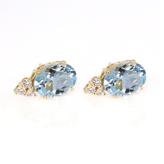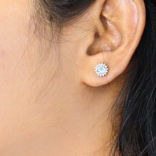 Cluster Studs White Studded Aquamarine Earring 14K Gold