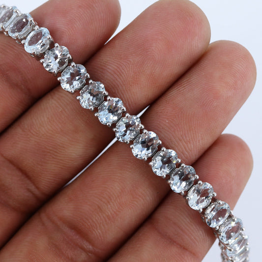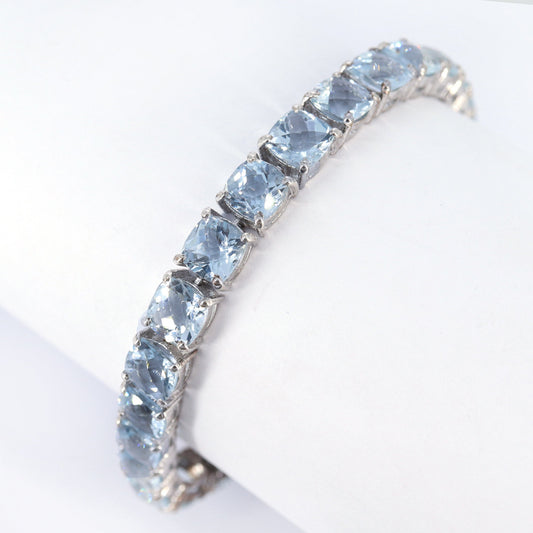 Cushion Shape Aquamarine Gemstone Bracelet Silver