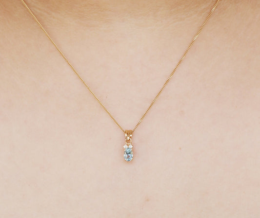Fresh Water Pearl Aquamarine Necklace 18K Gold