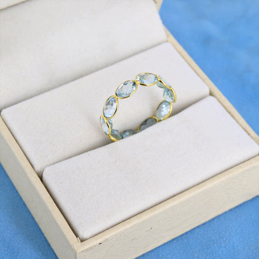 Aquamarine Stone Full Eternity Bezel Wedding Band Yellow Stackable Band Matching Band / Him 18K Gold
