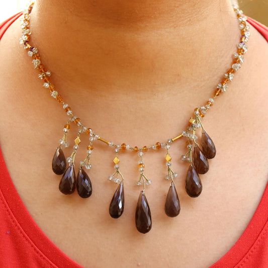 Smoky Quartz Citrine Aquamarine Purple Amethyst Beaded Necklace 14K Gold