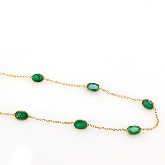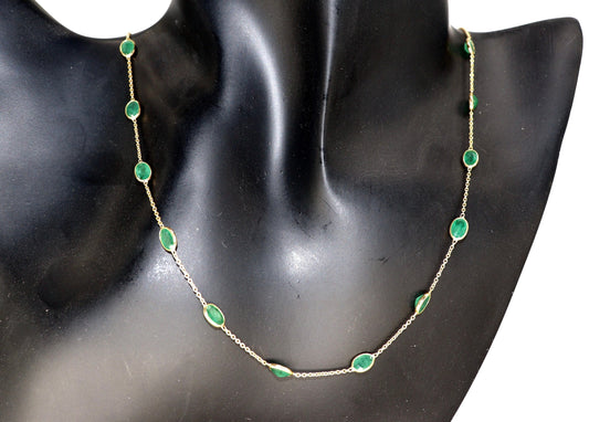 Jewelry Emerald Oval Cut Handmade Bezel Setting Chain Precious Emerald Chain Good Looking Gemstone Green Color Chain 14K Gold