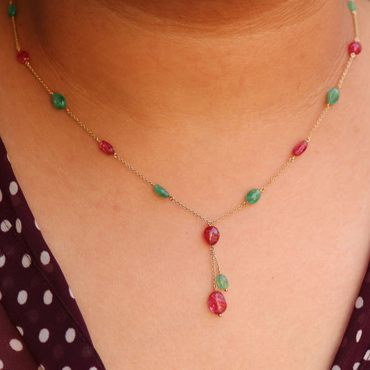 Handmade Ruby Chain: Delicate Gemstone Necklace 18K Gold