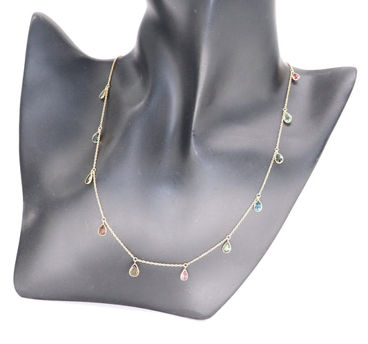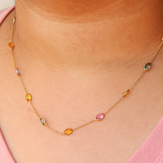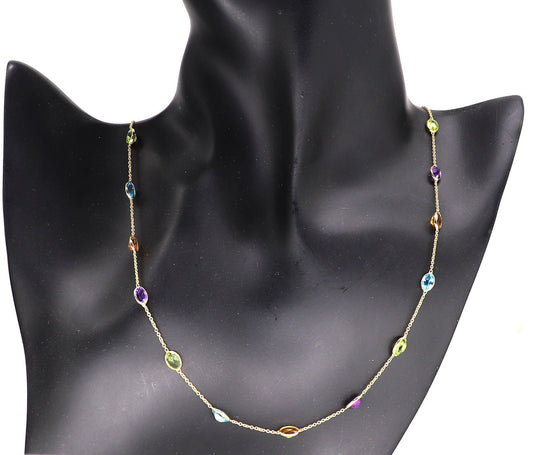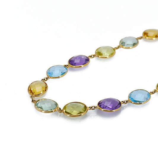 Yellow Chain Necklase Bezel Amethyst Citrin Blue Topaz Peridot Gem Stones. Multi Colour Chain Chain 18”. 18K Gold