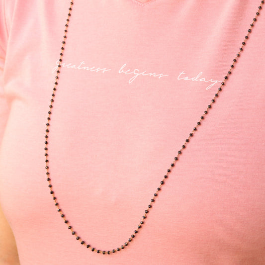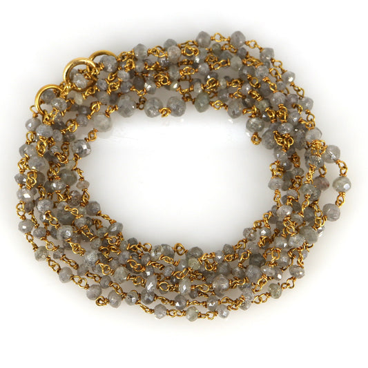 Yellow Rosary Chain/ Grey Color Beads Necklace 18K Gold