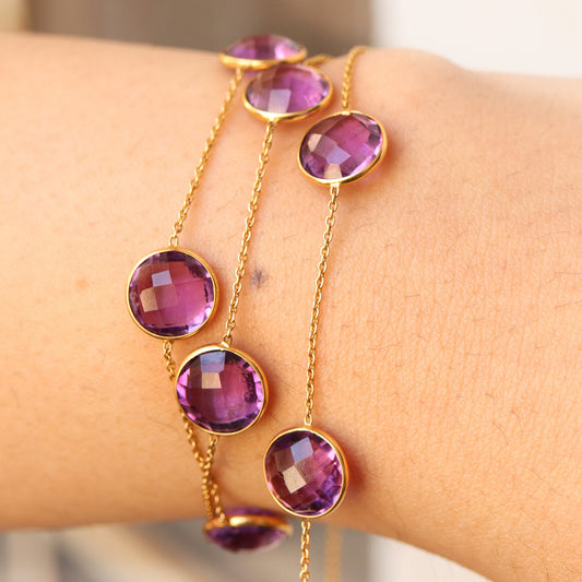 February Purple Amethyst Gemstone Chain/ Yellow Chain/Round Shape Chain/Amethyst Bracelet 18K Gold