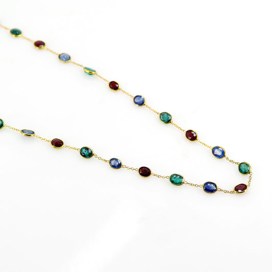 Emerald Blue Sapphire Ruby Charm Chain Gemstone Connector Chain Connector Chain Multi Gemstone Yellow Necklace 14K Gold