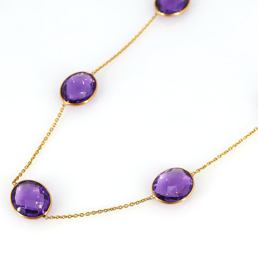 Purple Amethyst Checker Cut Gemstone Chain/ Yellow Chain/Oval Shape Chain/Amethyst Bracelet 18K Gold