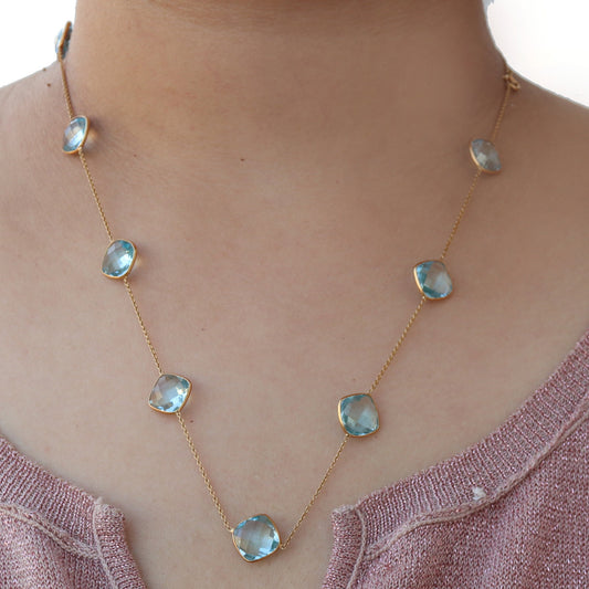 Blue Topaz Chain Blue Topaz Necklace 18K Gold