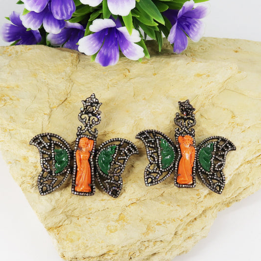 Coral Carving Gemstone South Sea Pearl Earring