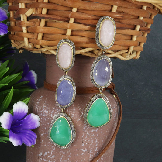 Pink Moonstone Blue Agate Chrysoprase Dangles Earring