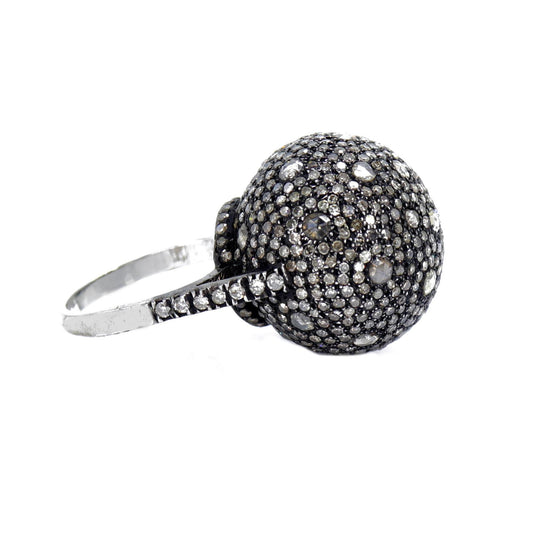 Vintage Glamour Sterling Ball Shape Round Ring Silver