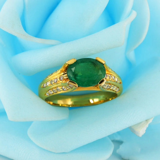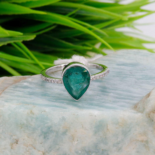 Unique Pear Shape Emerald & Round Shape Ring 18K Gold