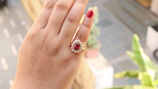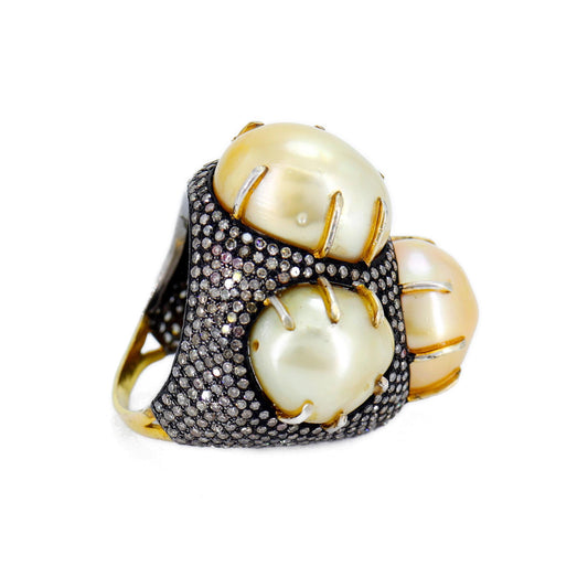 Vintage 9K Pearl & Citrine Cocktail Ring Gold