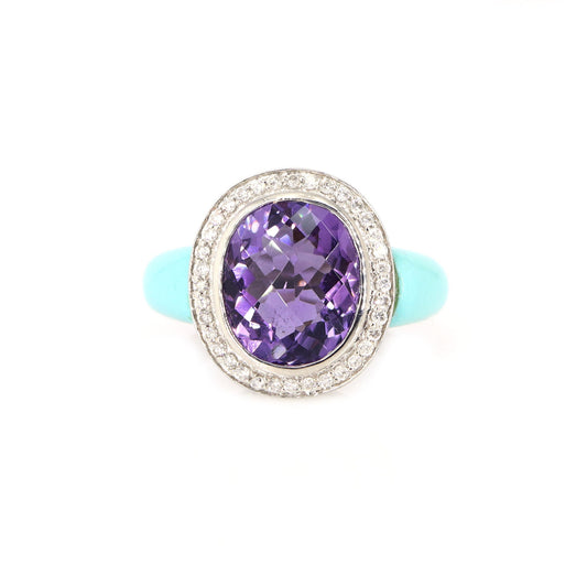 Vintage Style Amethyst Engagement Ring 18K Gold