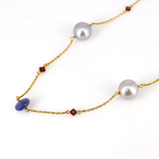 Vintage Yellow 30" Double String Pearl Curb Chain Necklace 18K Gold