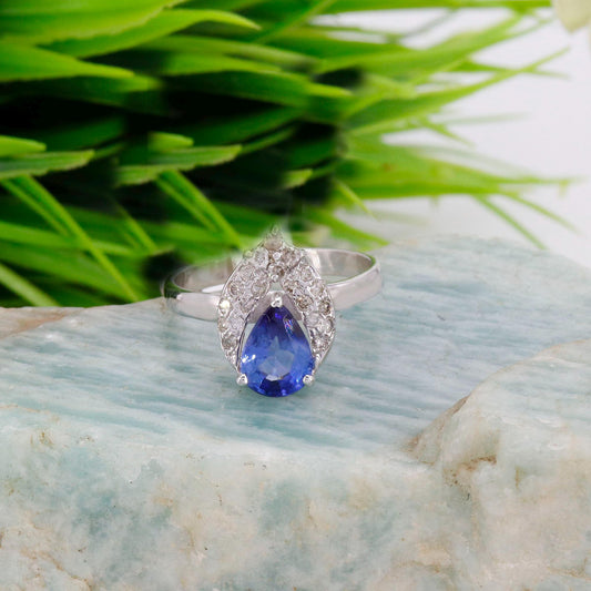 Unique Pear Shape Blue Sapphire Ring 14K Gold