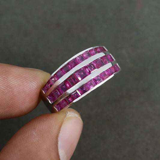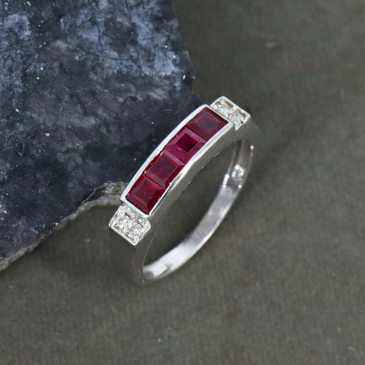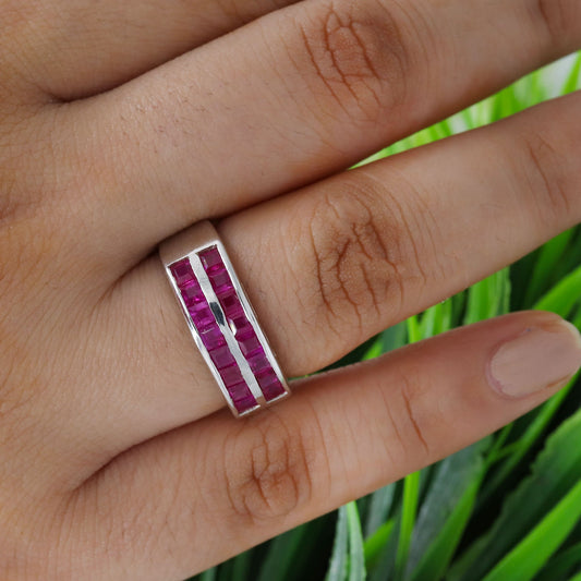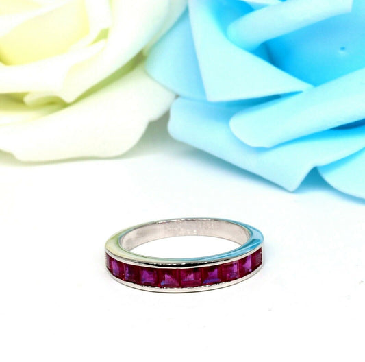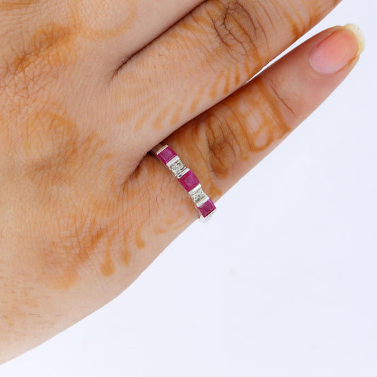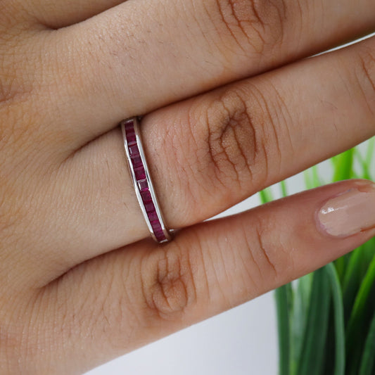Ruby Wedding Band Yellow Band Ruby Half Eternity Band Stacking Ring 14K Gold