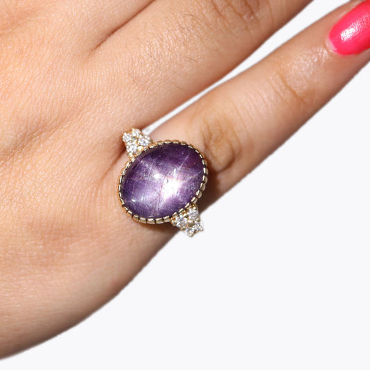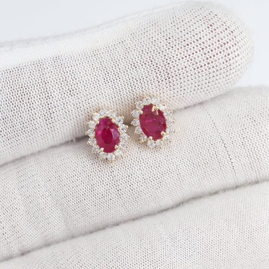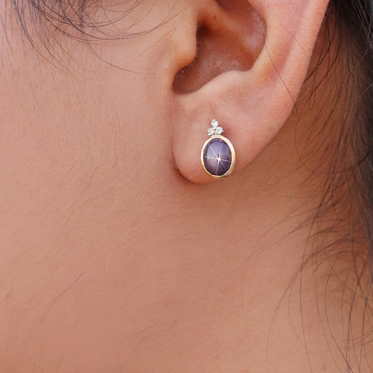 Star Ruby Studs Yellow Certified Ruby Cabochon Earring 14K Gold