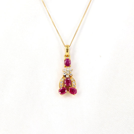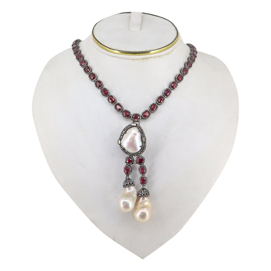 Victorian Style Ruby Baroque Pearl Necklace 14K Gold