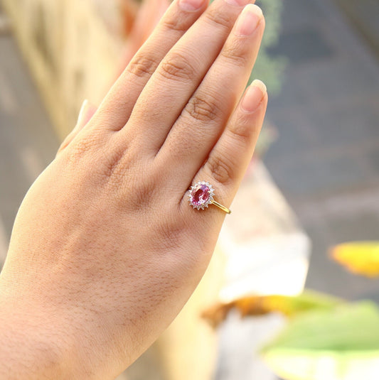 Yellow 1.46 Genuine Pink Sapphire Ring 14K Gold