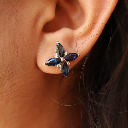 White Ear Studs Blue Sapphire Blue Sapphire Earring 14K Gold