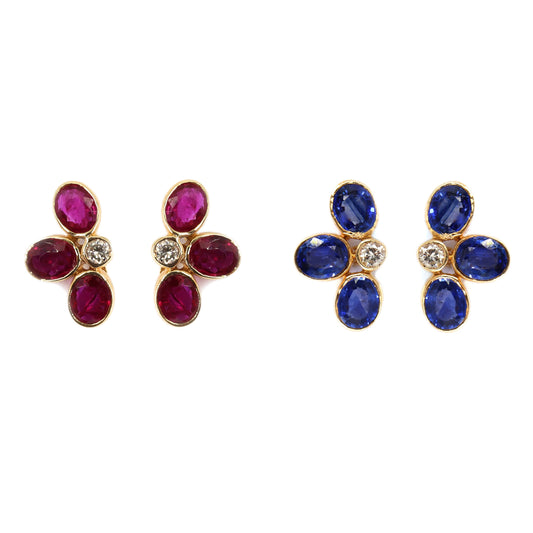 Genuine Sapphire/Ruby Studs/ Yellow Blue Sapphire/Ruby Earring 14K Gold