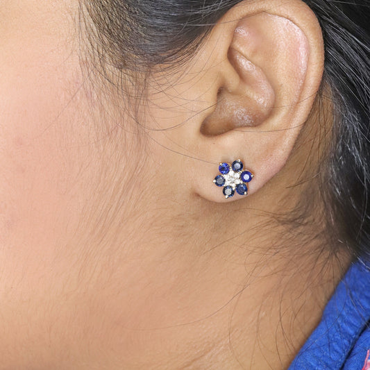 Genuine Blue Sapphire Gemstone Stud Earring 14K Gold
