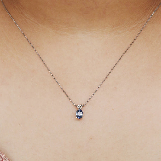 Oval Cut Blue Sapphire Necklace 14K Gold