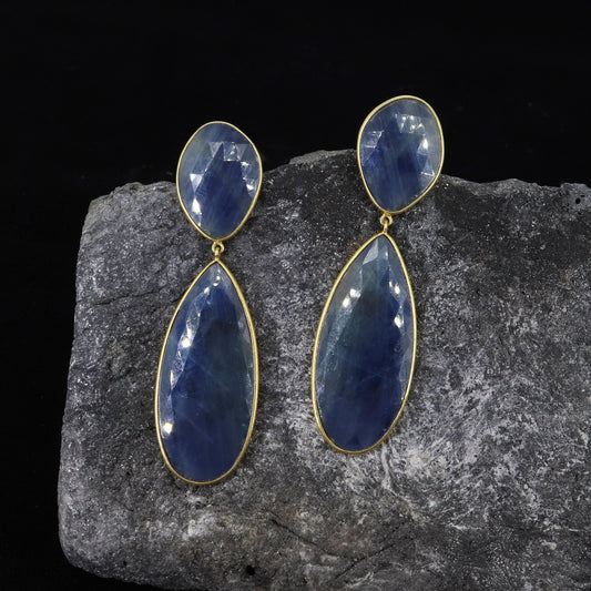Rose Cut Blue Sapphire Earring 18K Gold