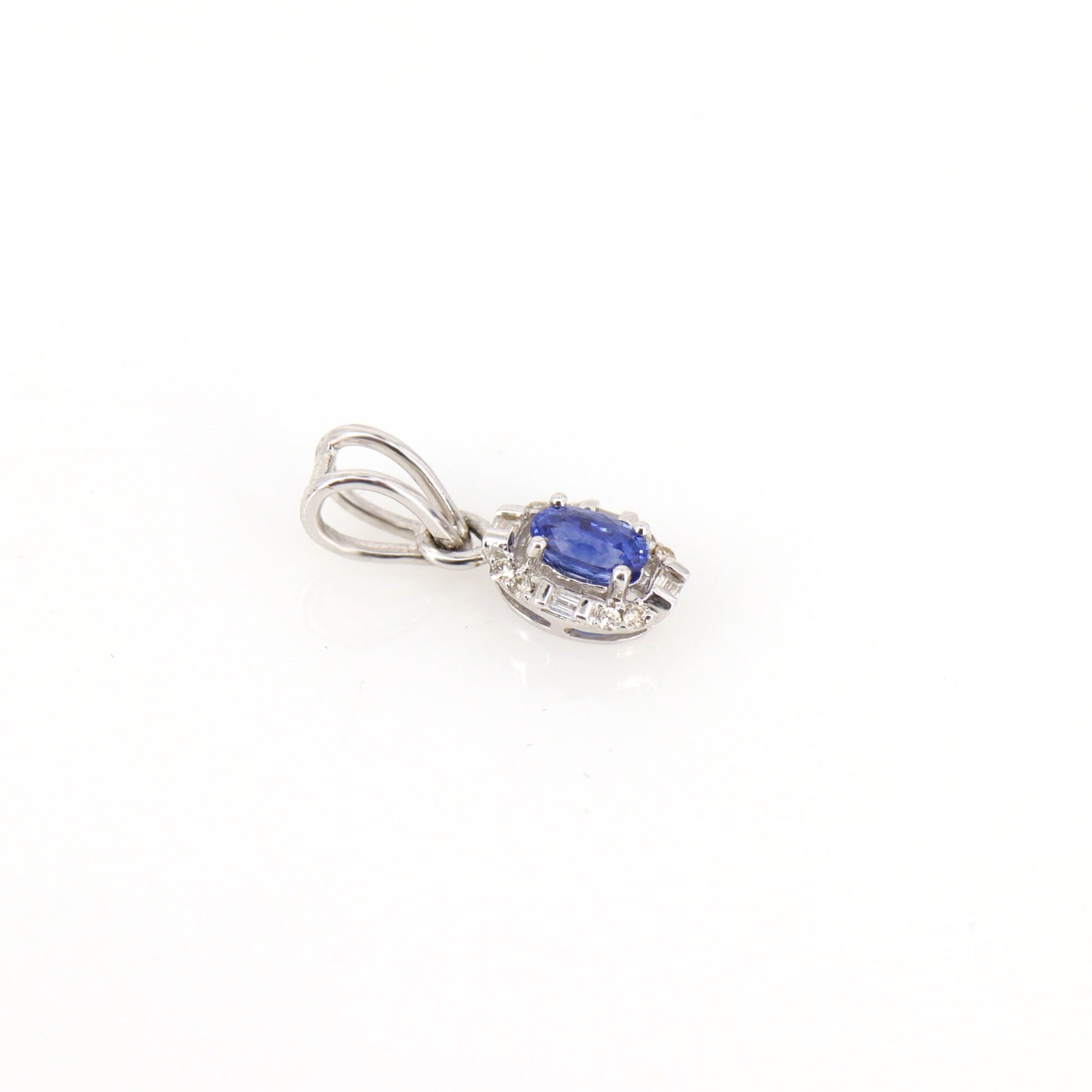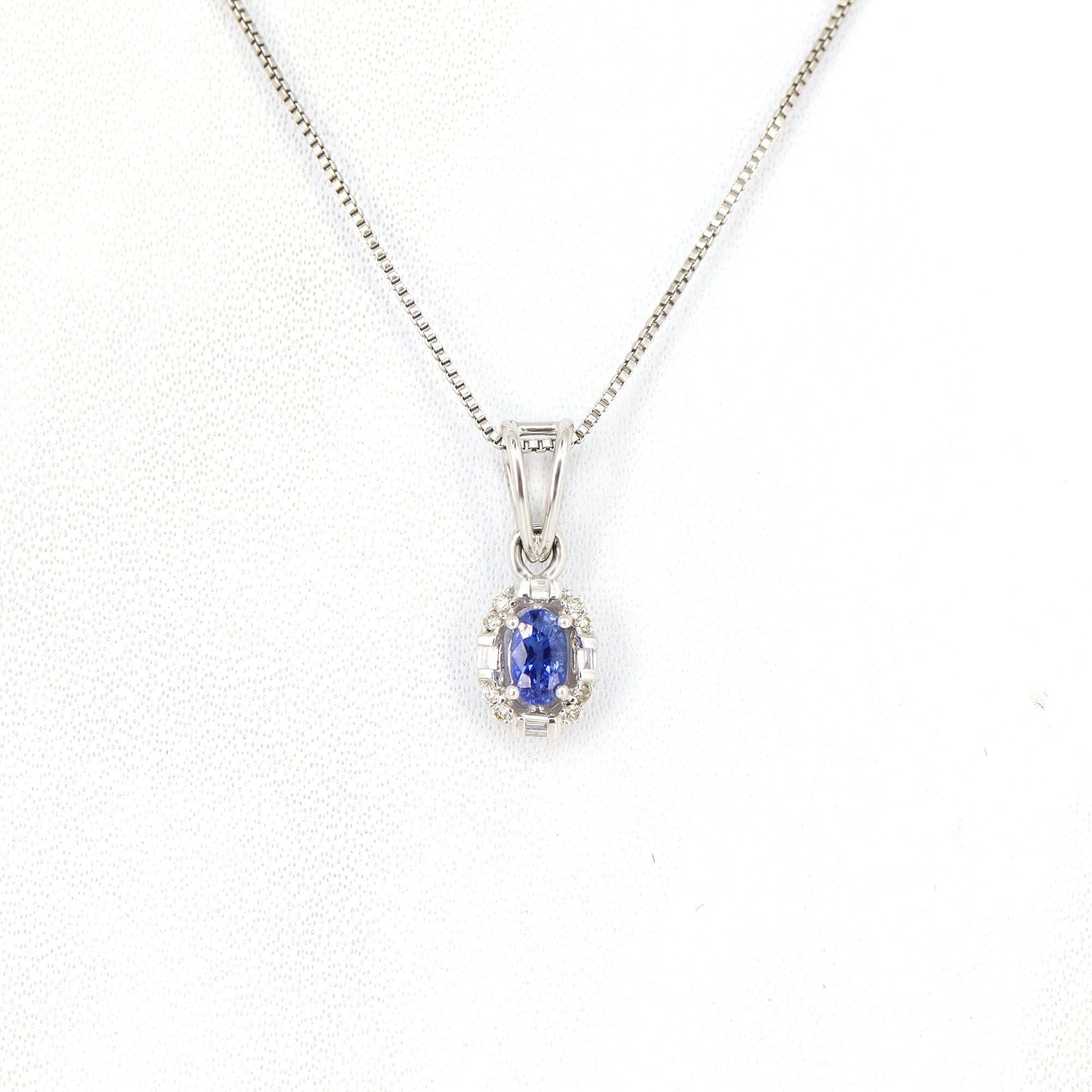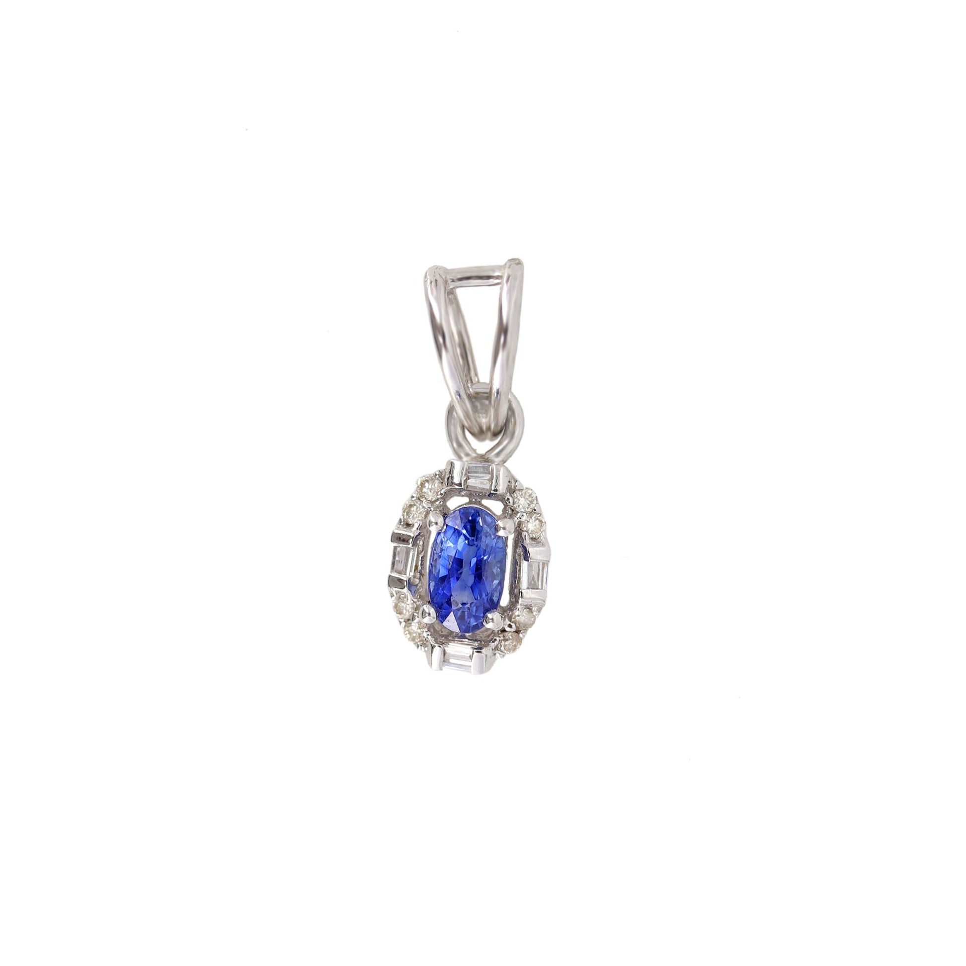 0.31 Oval Blue Sapphire Halo White Pendant 18K Gold