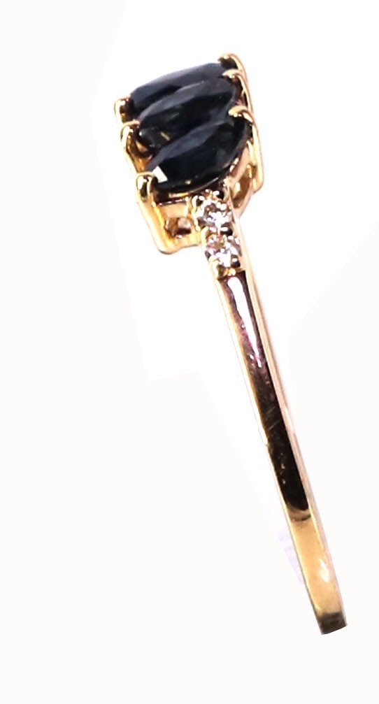 14K Blue sapphire and diamond gold ring - Precious stone ring - Dainty ring - Marquise cut Blue Sapphire Ring