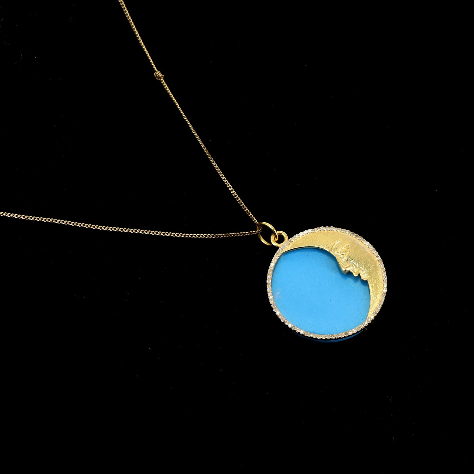 Half Moon Round Charm Turquoise Charm Pendant 14K Gold