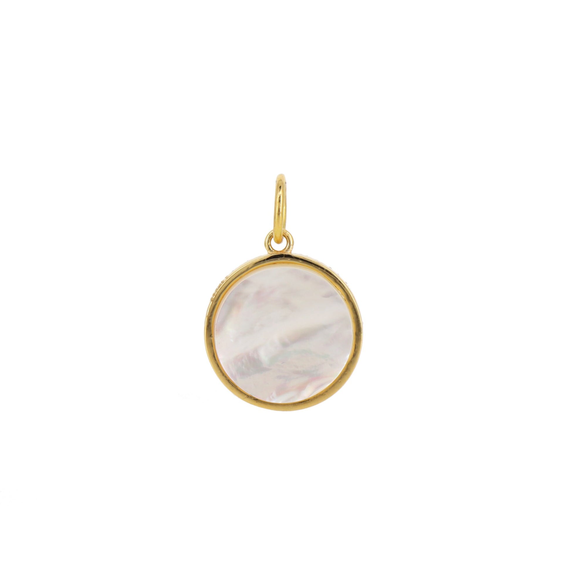 14K Half Moon Round Charm, Turquoise Charm Pendant, mother-of-pearl Charms Pendant For Her, 14K Gold Stone Moon Design Charms
