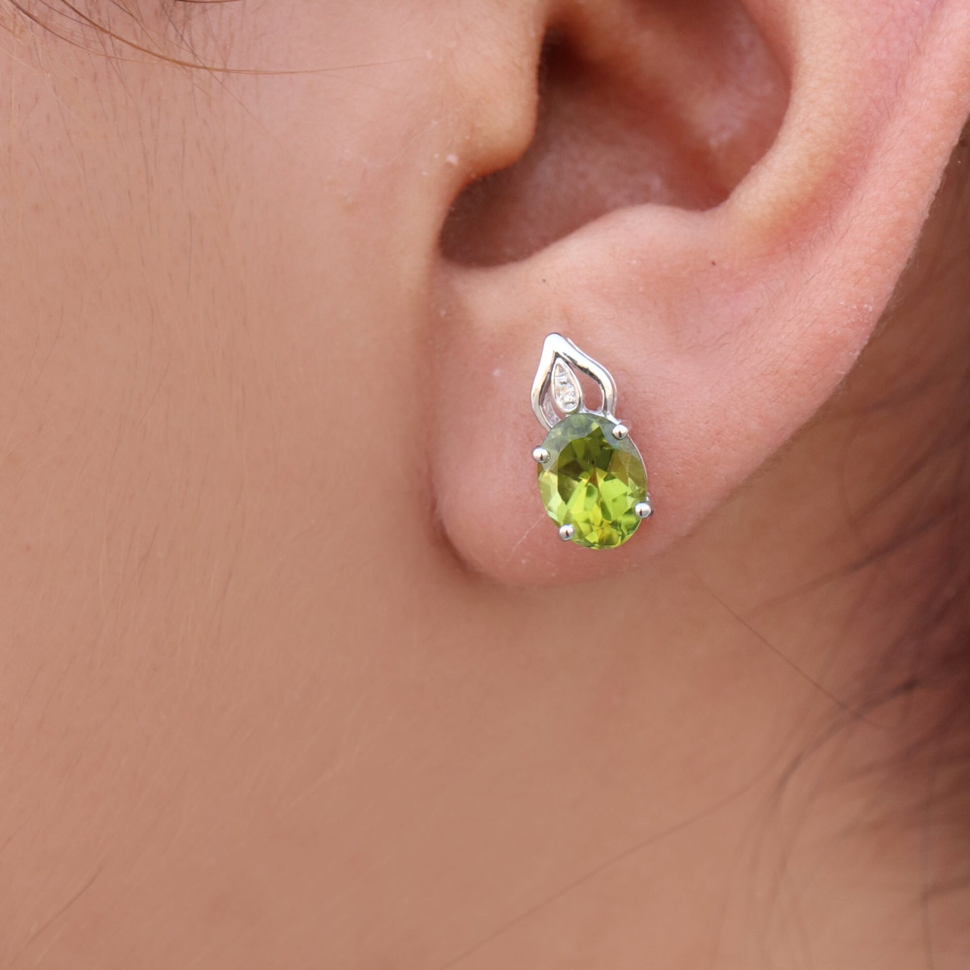 White Studs Peridot Birthday Oval Cut Peridot Green Gemstone Earring 14K Gold