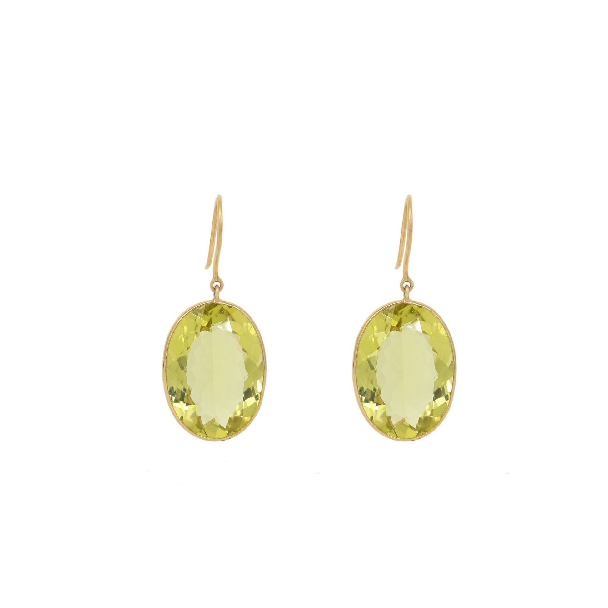 18K Gold Lemon Topaz Earrings, Lemon Topaz Oval Drop Earring, Lemon Quartz Jewelry For Her, Big Size Stone Bezel Set Earrings