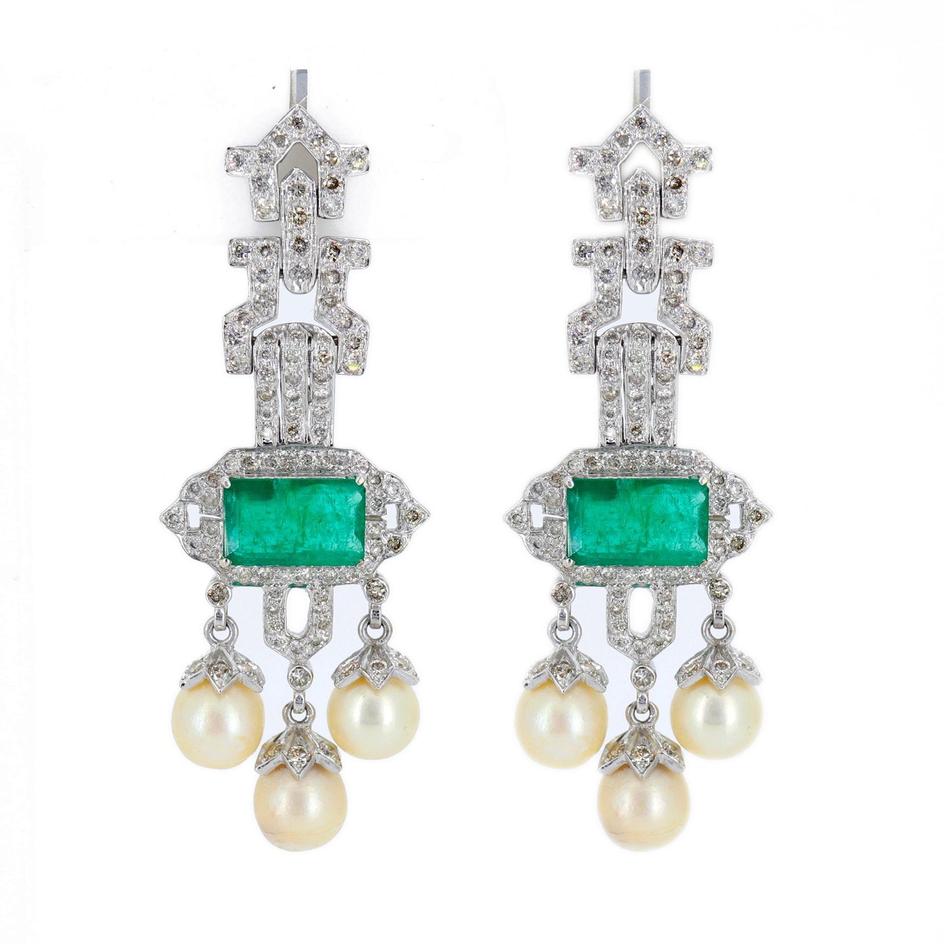 White Emerald Pearl Earring 18K Gold