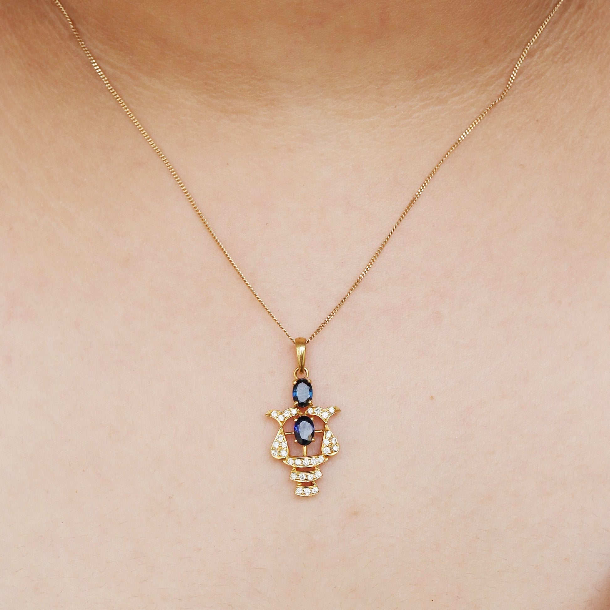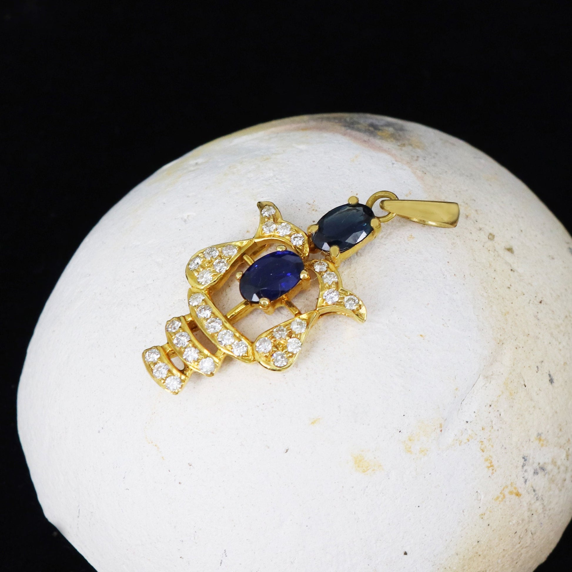 18K Solid Yellow Gold, Natural Blue Sapphire & Diamond Pendant, Oval Cut Sapphire, Gemstone Pendant, Round Cut Diamond, Ladies Jewelry