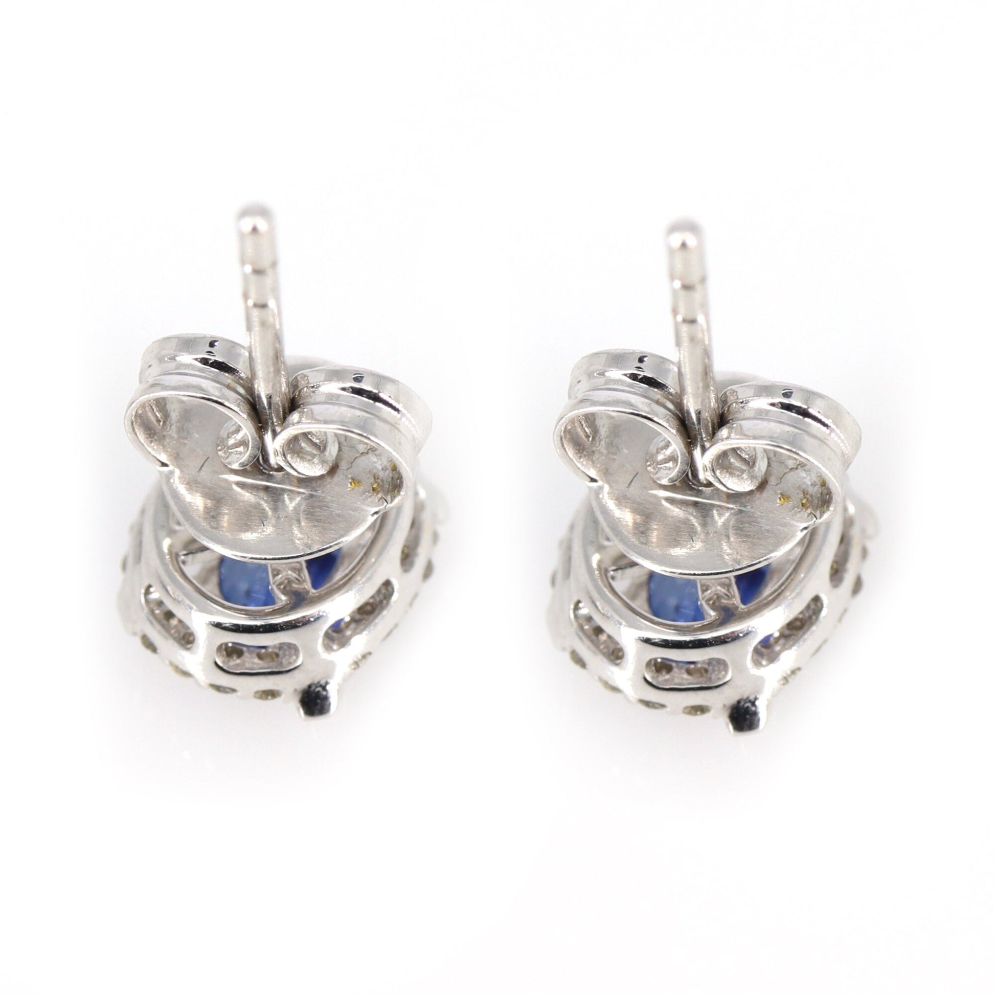 18K White Gold Sapphire Diamond Studs - Halo Diamonds Gold Earrings - Solitaire Earring - Dainty Studs - Designer Stud Earrings- For Her
