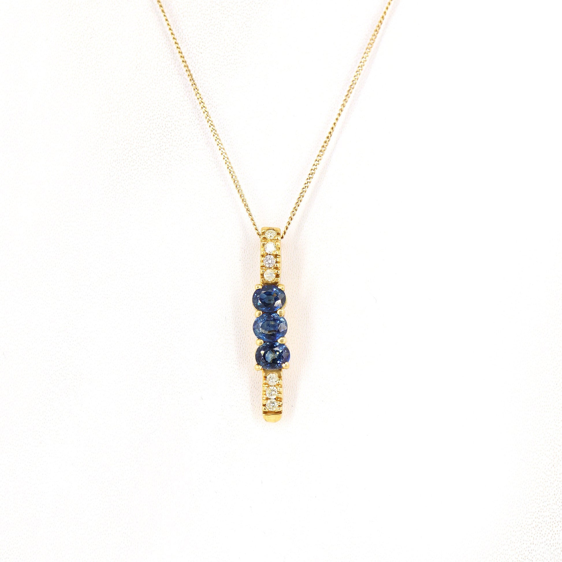 18k Yellow Gold Diamond Blue Sapphire Pendant, Bar Style Sapphire Pendant, Oval Cut Sapphire Stone Pendant, Mothers Day Gitf