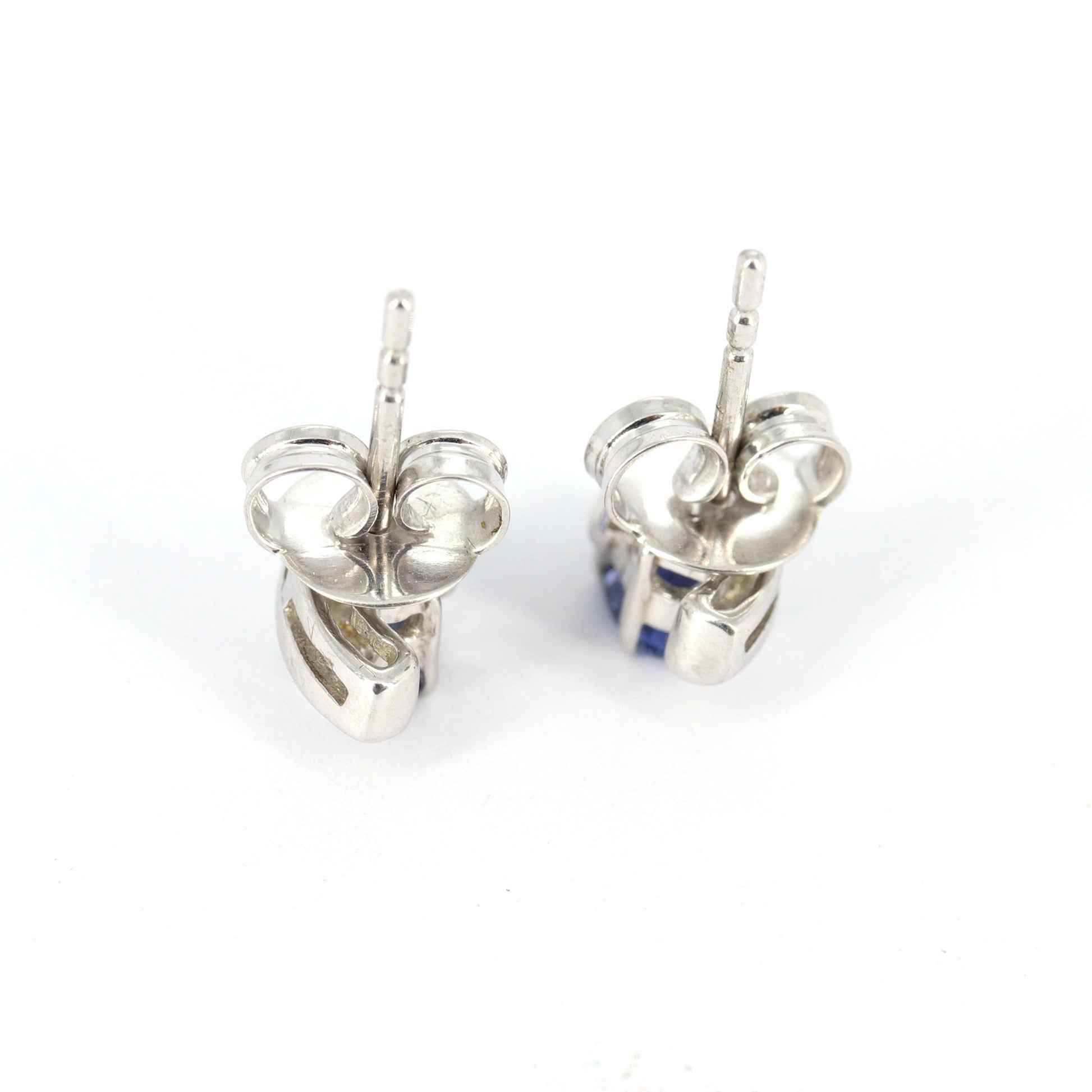 9mm Tiny 14K Solid White Gold with Natural Blue Sapphire and Diamond Earrings, Birthday For Her, Oval Cut Sapphire, Minimalist Studs