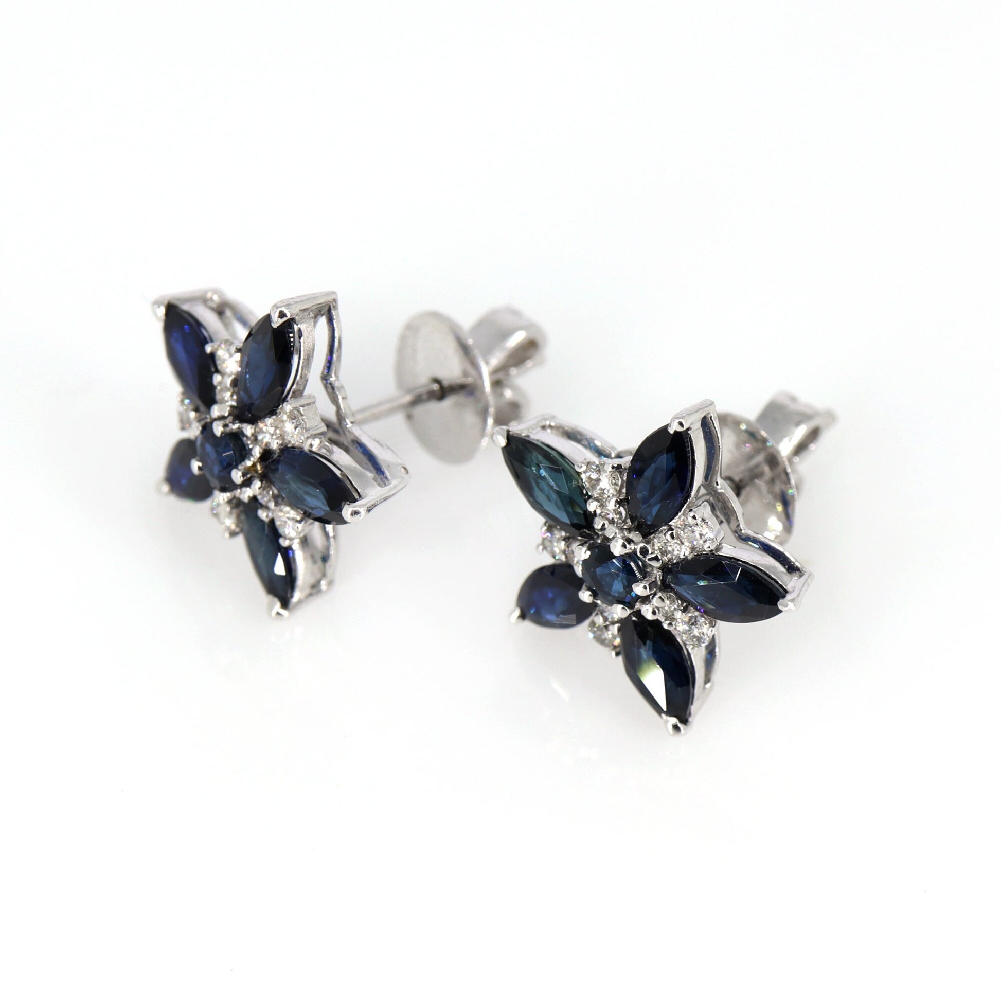 Blue Sapphire and Diamond Stud Earring, 14K Solid White Gold, Push Back Earring, Prong & Pave Setting, Stud Earrings, Christmas